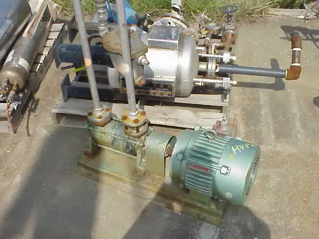 Sihi Model KPHA Liquid ring type vacuum pump. BN 139. Mounted on base with 7.5 HP, 3530 RPM motor.