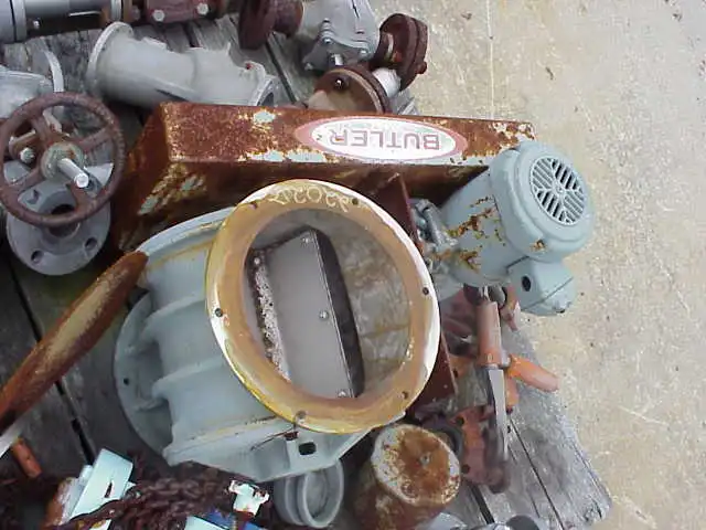 10" Rotary valve. Rotary Air Lock. Operated by US 1.5 hp, 1745 rpm, 3/60/230/460V motor. Final output 45 rpm. (see also FEEDER/CONVEYOR category for more rotary valves)