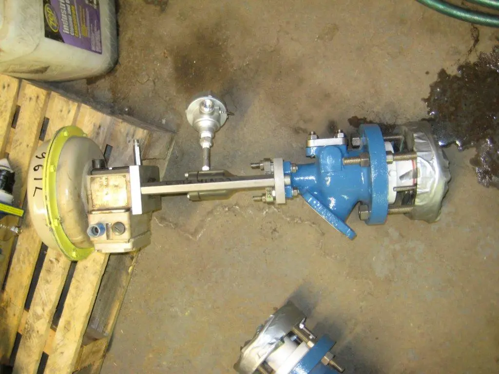 Used 2" x 2" Glass lined Pneumatic Actuator. Mfg by Samson (Germany). Air requirement: 8-38 PSI. Model 3277-021, S/N: 9119.