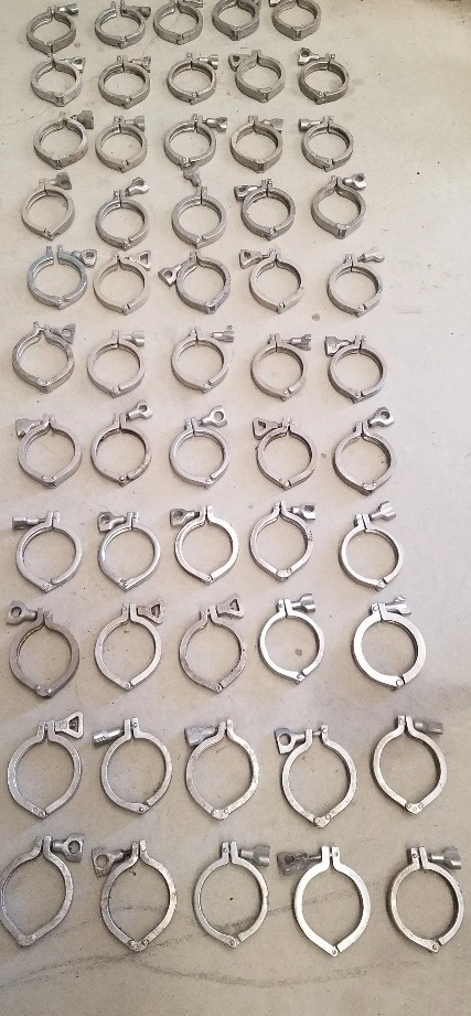 lot 3" Stainless steel tri-clamp fittings. Sold by the 5 gallon bucket (each bucket contains approx. 62 @ $7 each). (1) 5 gal buckets available. Approx. 80 LBS each.