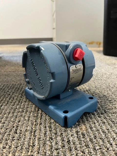 Rosemount Temperature Transmitter, model 0444TK2D1A2NA. Span: 280/840 C. CAL: 350 TO 900 F. 4-20 mA. 45 VDC.