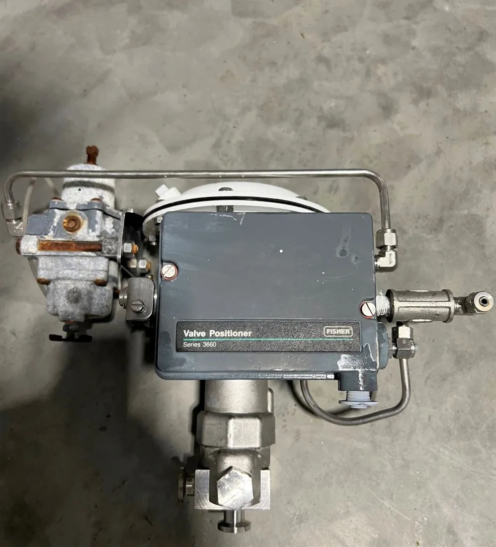 1/2" Baumann Model 16-83911SA Sanitary Control Valve w/ Series 2660 Fisher Valve Positioner. Baumann Serial# 058363-1-1. 316 Stainless Steel. 0.7 Rated CV. CL150 Body Rating.