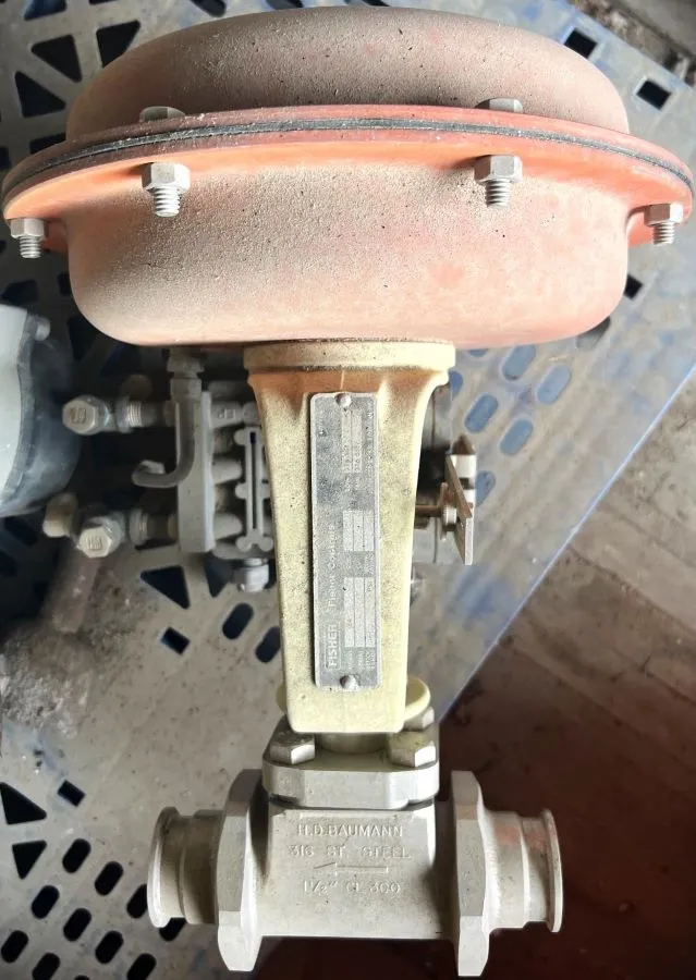 Fisher 54-24-588S Baumann 1-1/2in Stainless Steel Pneumatic Control Valve w/ Valve Positioner