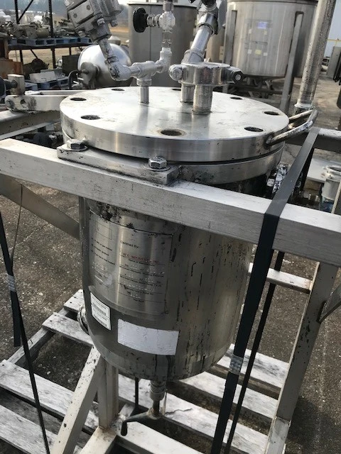 use 12 Liter (3 Gallon) Stainless Steel reactor. Rated 100 PSI @ 400 Deg.F. Jacket and internal. No Mixer. 8" ID. x 14" T/T. Built by REC IND. Mounted on Stainless Steel stand.