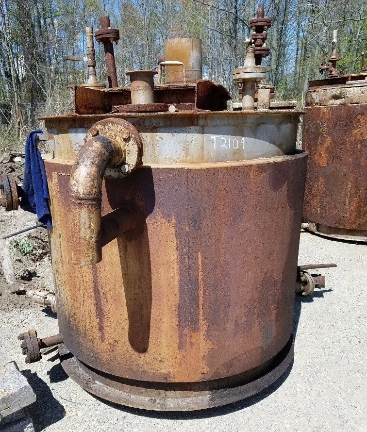 used 350 Gallon Stainless Steel Tank with jacket. Has bridge to mount mixer. Internal baffles. Approx 4' dia x 4' T/T. Previously used in biodiesel/biofuel plant, wastewater.