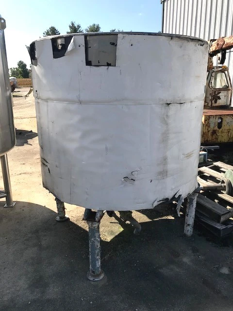 used 600 Gallon Hamilton Stainless Steel Tank. Cone bottom and open top. 5' dia. x 4' T/T. 76" OAH.