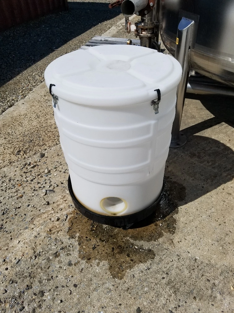 (2) 40 Gallon Poly drum/tank. 22" Dia x 28" H. 4" Side Btm Outlet (threaded). With lid, also has removable cone insert that goes inside and sits on bottom of tank.