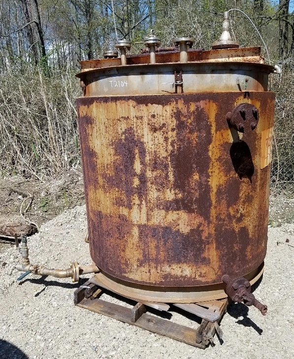 used 550 Gallon Stainless Steel Tank with jacket. Has agitator shaft (no drive) bridge mount. Internal baffles. Approx 4'6" dia x 5' T/T. Previously used in biodiesel/biofuel plant.