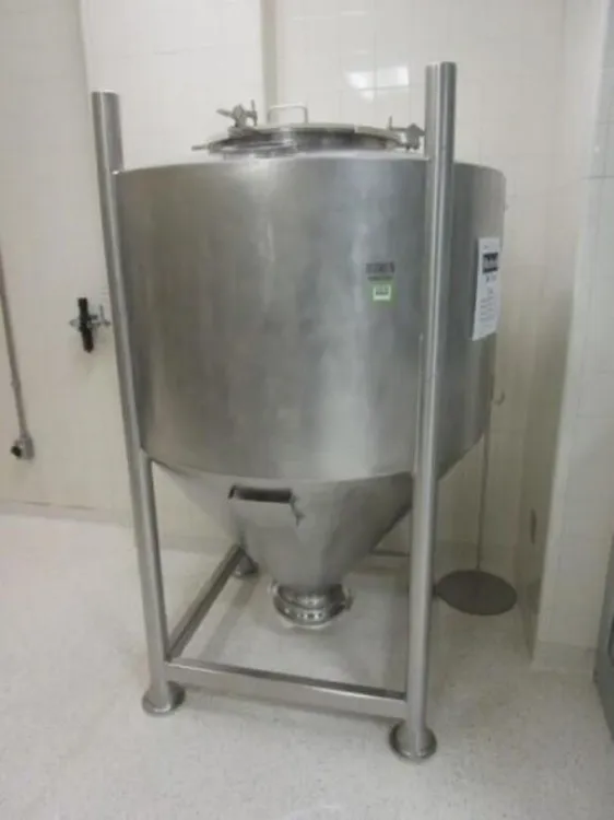 (25) 48 Cu.Ft. (360 Gallon) Sanitary Stainless Steel Transfer Tote/Vessel. 4' Dia. x 31" T/T with 32" deep cone. Approx. 8" Butterfly valve discharge with 4" ground clearance. Approx. 78.5" Overall Height. Built by Caribbean Metal and Wilson Works. Last used in a Pharmaceutical facility.