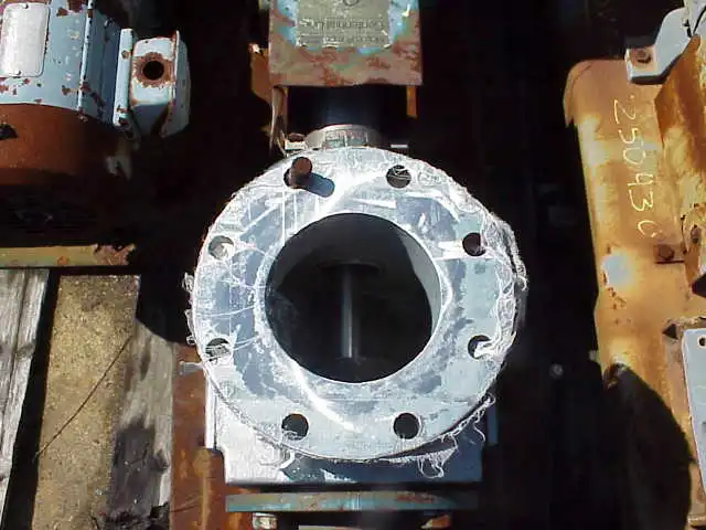 Moyno model SSQ Trim AAA. Driven by 3 hp Reliance motor through Vari-drive gearbox. Ratio is 4.1 with input RPM 1740 and output RPM 420. Frame 1FOGSI, Form GE.