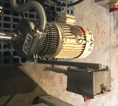 used 2" x 1.5" Sanitary Pump. Driven by 5 HP, 230/460 volt, 3490 rpm motor. Last used in sanitary food plant.