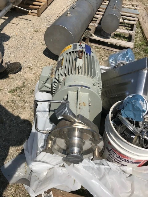 used Fristam Model FP742-175 sanitary centrifugal pump. 2.5" x 2", Driven by 15 HP, 460 volt, 3530 rpm motor. Rated up to 175 gallons per minute with a max head of 250 feet - depending on materials, application, environment and machine configuration.