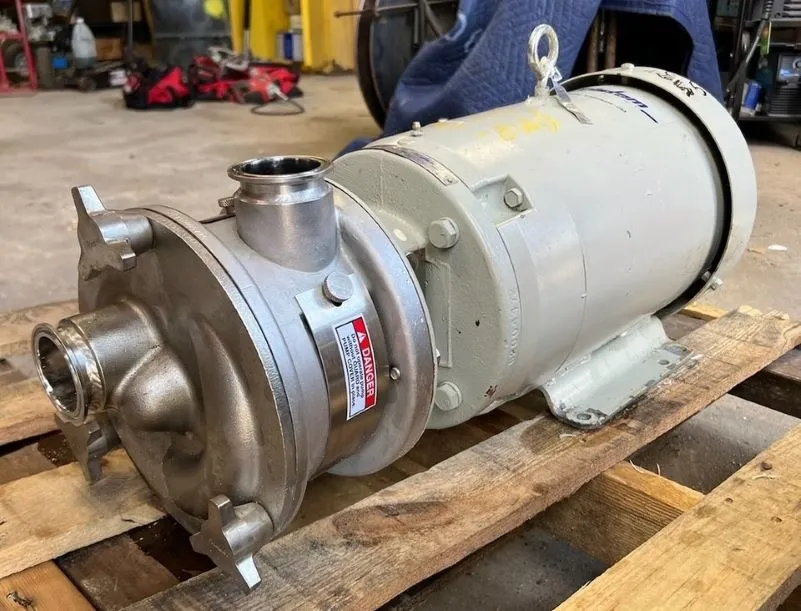 used Fristam Model FZX150, Stainless Steel Self-Priming Liquid Ring Centrifugal Pump. Approximate capacity 50 gallons per minute at 80' head. 2" Tri-clamp inlet, 2" tri-clamp outlet. Serial# FZX150005745. Driven by a 7.5 HP, 230/460 volt, 1760 rpm motor