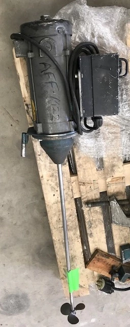 Used 1 HP Clamp-On Mixer. Has Baldor 1 HP, 90 volt, 1750 RPM with Lesson adjustable speed motor. Stainless Steel shaft ~2'6" lgth. with 4.5" dia. prop. Clamp is Not available.