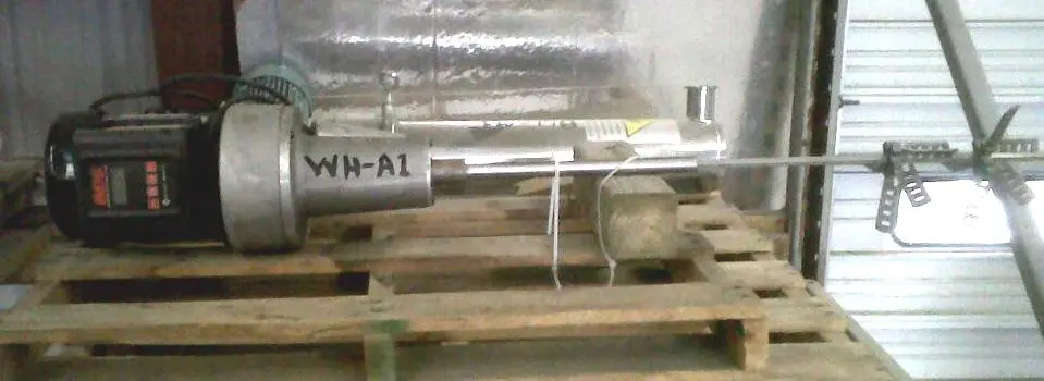 Used clamp-on stainless steel mixer / variable speed agitator with digital readout. Driven by 1/2 HP, 1725 RPM, 115 Volt, single phase motor. Has a 30" lgth. shaft with collapsible agitator blades (approx. 8" in diameter when open) for easy installation inside a port. Sold As Is.