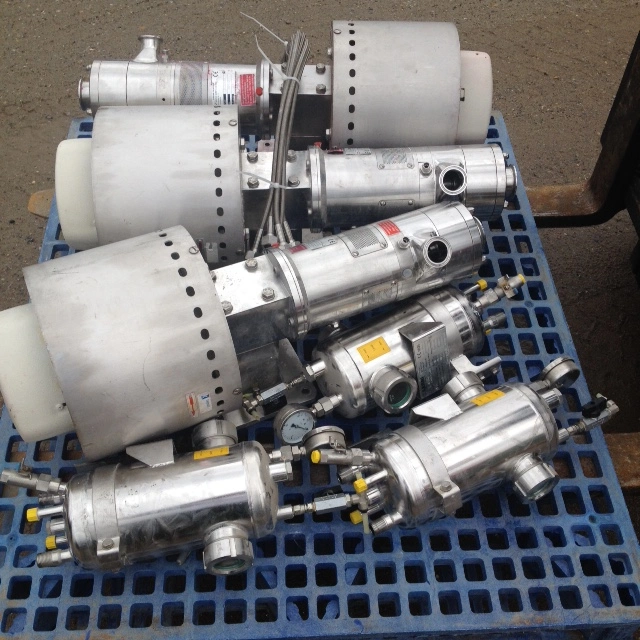 (1) IKA Dispax Reactors model DR2000/5 Inline High Shear Mixing/Milling units rated at 2500 l/h (660 GPH). Last used in toothpaste plant (Sanitary Application). The IKA DISPAX-REACTOR DR 2000 is a three-stage (3 sets of rotors) high shear inline dispersing machine used for the production of very fine emulsions and suspensions. Applications include: Neutralization & PH adjustment, Tooth paste, Salt solutions, Edible oil refining & degumming, Shampoos & Conditioners, Polymerizations, Pesticides, Herbicides, Reaction Enhancements, Microencapsulations, Viscosity Control, Creams, Lotions, Fuels.
