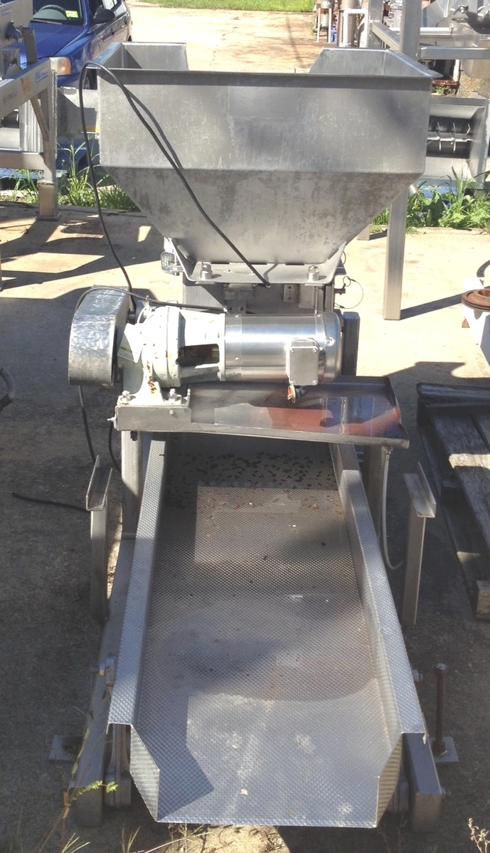 Commercial Manufacturing and Supply Vibratory Conveyor, Vibrating Shaker/Feeder. 6' Lgth x 18" wide x 4" deep. S/N# CB7865854-B. Job # 4747. Has 1 HP 208-230/460 volt, 1725 rpm motor on shaker. Has "Cluster Buster" on inlet feed. Inlet opening has breaker bars and is 27.5" x 37.5" and funnels to 9" x 11" There is a shaft and drive motor for the cluster buster but nothing on the shaft. Last used in a Tomato processing line in food plant. Sanitary construction.