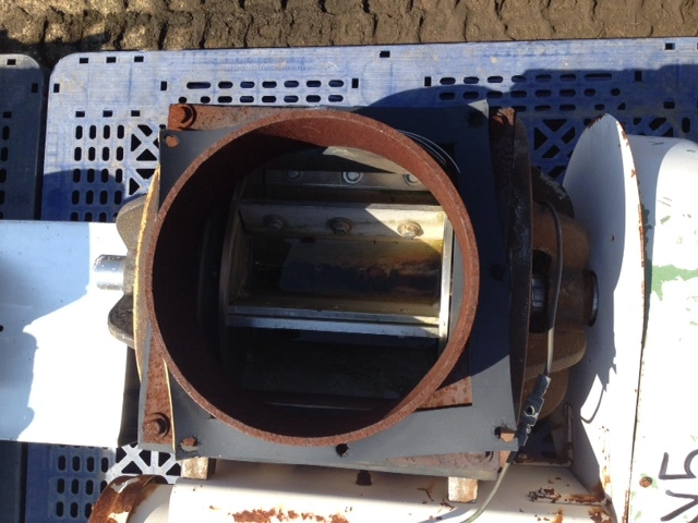 10" Square x 22" Ht. Sprout Waldron Rotary Air Lock Valve/Feeder. Stainless Steel. One end has 10" round adapter. 1 HP, 230/460 volt, Reliance drive into gear reducer.