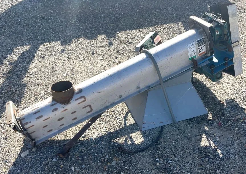 used 7" wide X 4'10" Lgth Screw conveyor. Has stainless Steel Trough and carbon steel screw. 6" outlet. 1 HP, 1750, 230/460 volt motor into gear reducer.
