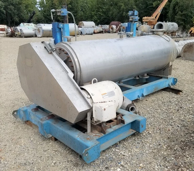 used 60 Sq.ft. Artisan Rototherm-E two zone Thin Film Evaporator. 304 Stainless Steel. Internal rated 30/FV @ 350 degF, two zone jacket rated 125 PSI @ 350/-20 degF. 30" dia x 10' L. Overall 14' x 7' x 6' H. Driven by 40 HP motor.
