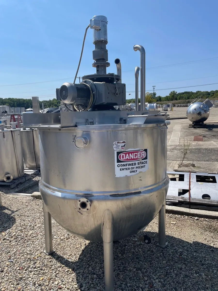 400 Gallon LEE Double Motion Sanitary Mix Kettle. Model 400D9MS. Counter rotating Scrape Agitation. Jacket Leaks, sold as is.