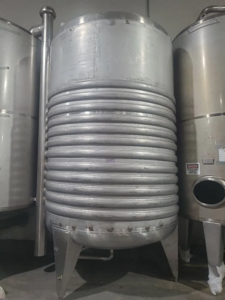 3000 Gallon Jacketed Sanitary Stainless Steel Tank. Dish Top and Dish Bottom. 7' Dia. x 9' T/T. Overall Height is 15'. 2.5" Outlet. Tank rated 1 Bar (14..5 PSI) . 1/2 Pipe Jacket rated 2.3 bar (33.3 PSI). Last used in Brewery.