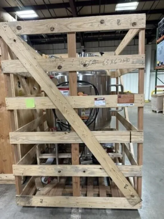 UNUSED 500 Liter (132 Gallon) Sanitary Jacketed Reactor/Fermenter Vacuum rated Vessel on load Cells. Built by Paul Mueller. Rated 60 PSI/Full Vacuum @ 350 (-20) Deg.F.. Approx. 39" dia. x 34" T/T. Jacket rated 150 PSI/FV @ 350 Deg.F.. Has provisions for bottom mounted mixer (not included). Mounted on portable base.