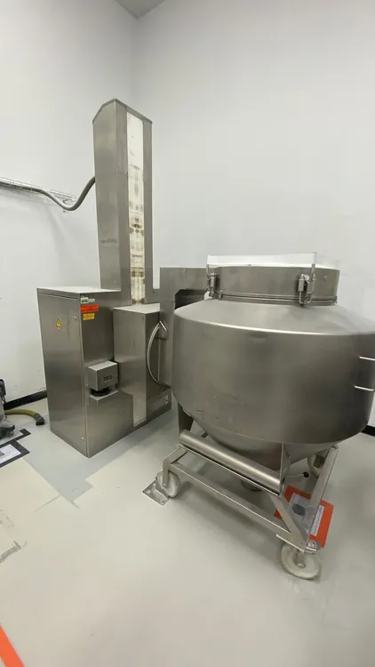 LB Bohle Tote Bin Blender, Model/Type PM1000. Comes with (3) 1000 liter and (2) 600 liter stainless steel Totes. Last used to mix material in dental manufacturing facility.